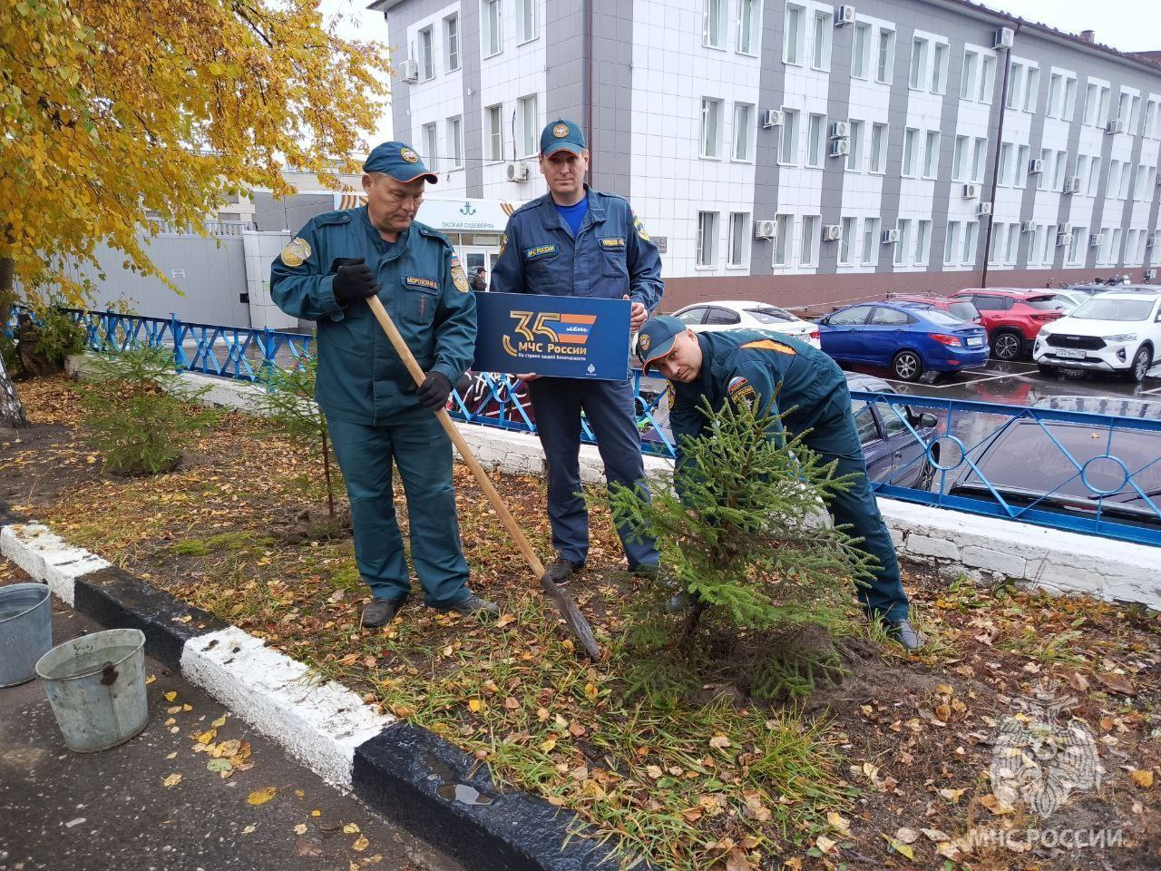 Кроме того, команда 40 пожарно-спасательной части г. Навашино высадила 7 елей на территории своей части, добавив зелени и уюта в окружающую среду!