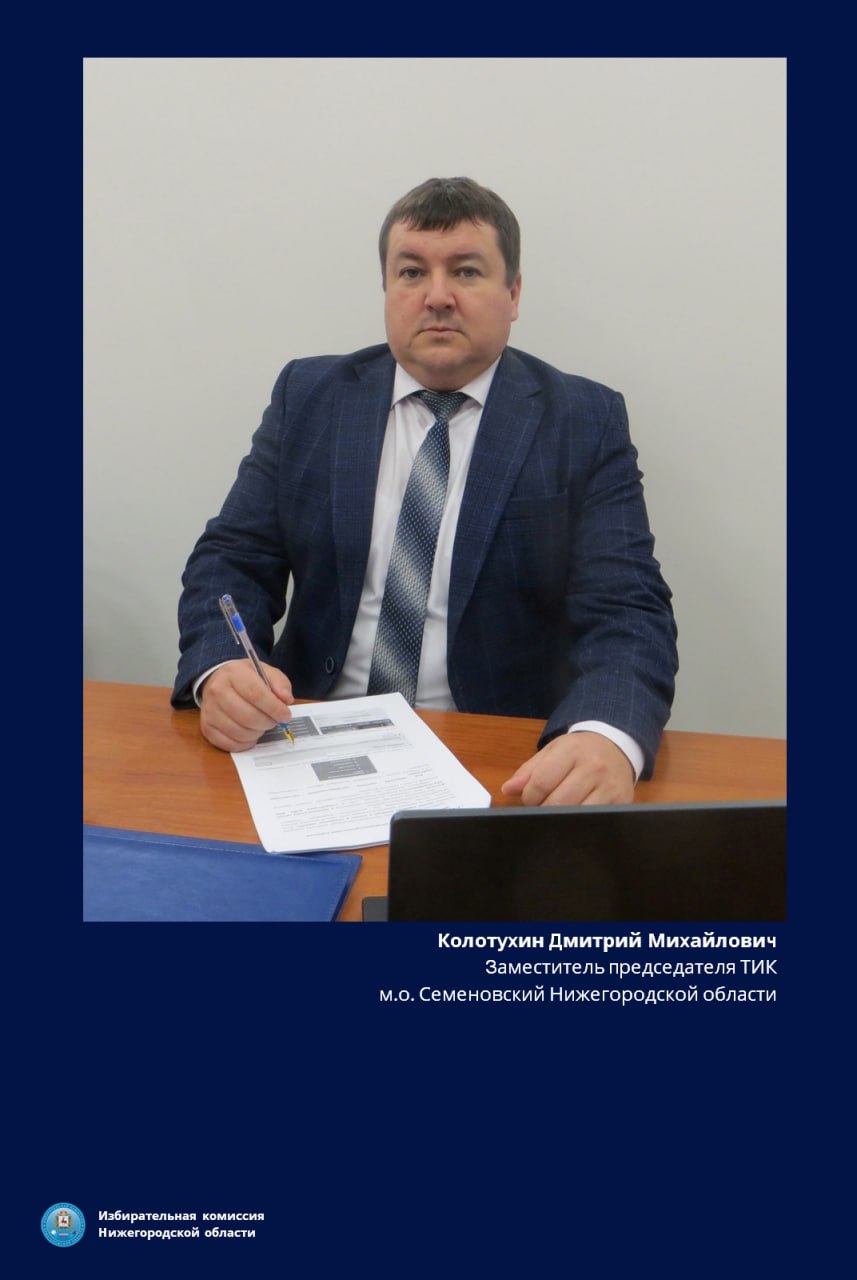 Сегодня Юбилей отмечает заместитель председателя территориальной избирательной комиссии муниципального округа Семеновский Нижегородской области – Дмитрий Колотухин!